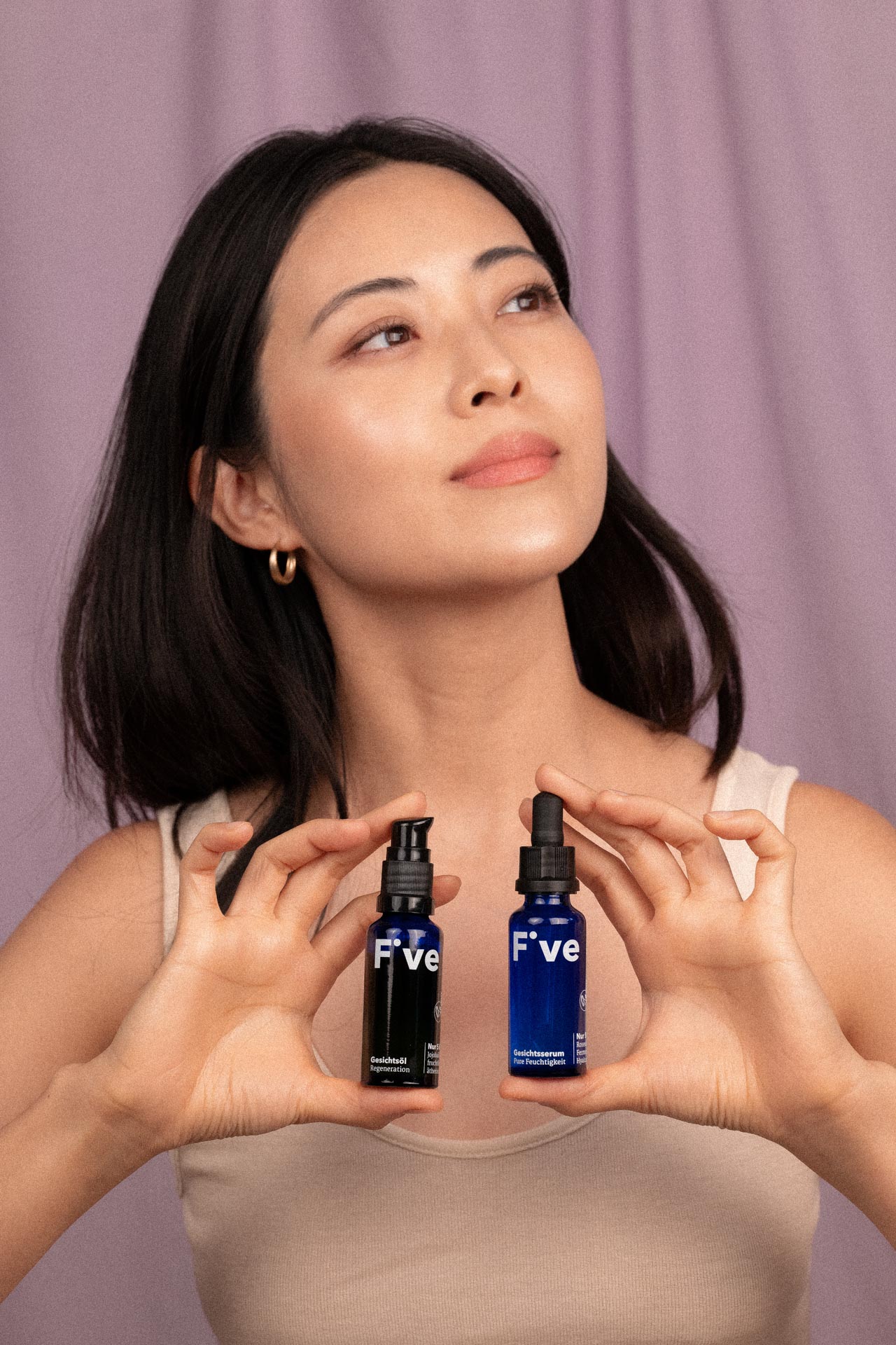 For Five Skincare, we developed product-focused photos with models designed to optimally showcase each product and illustrate its application. The result is an aesthetic that combines clear visibility with an appealing look.